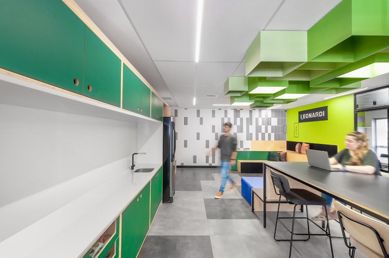 Obra em conjunto comercial, com projeto do Studio dLux, para o escritório Leonardi Advogados.