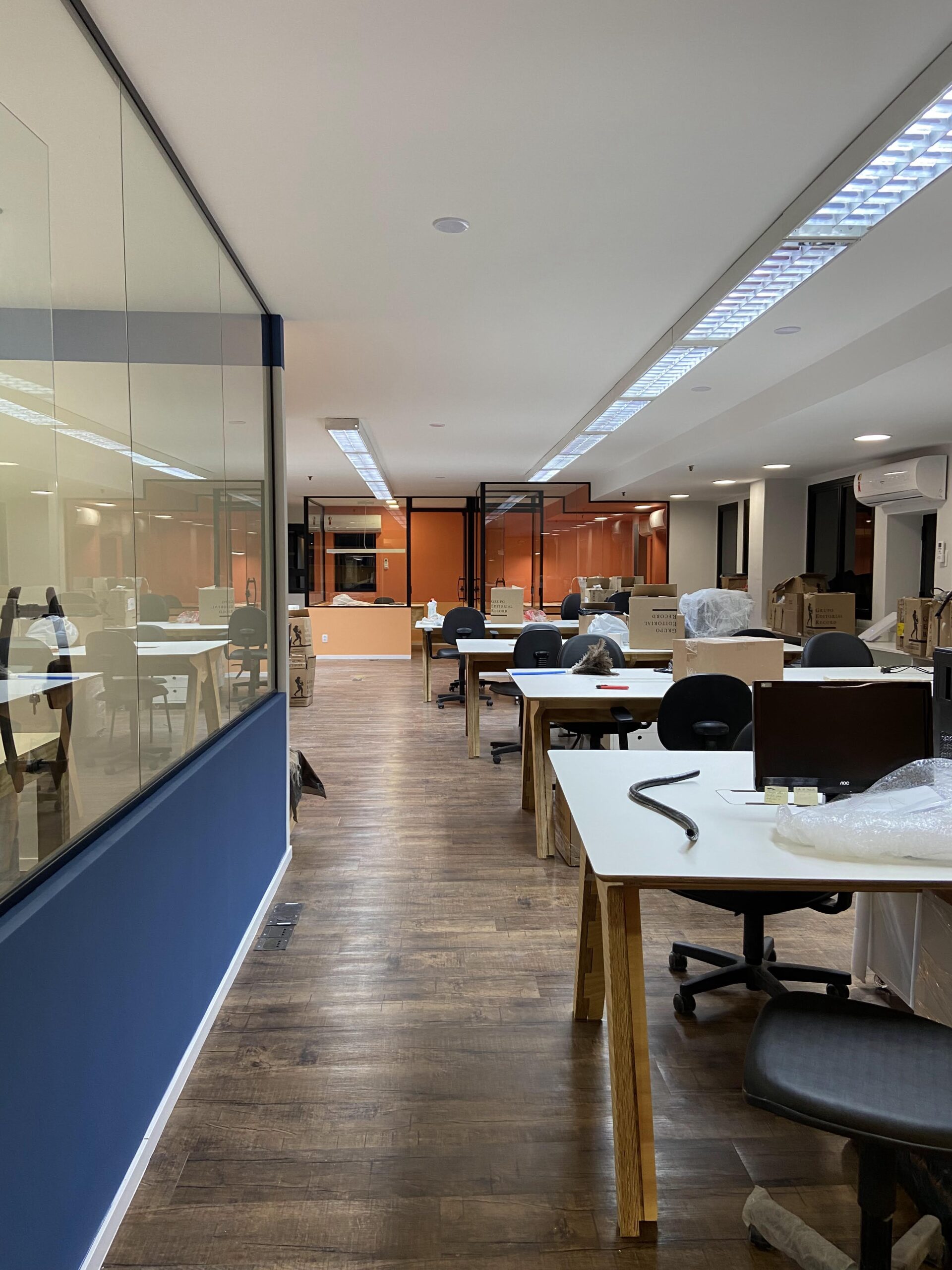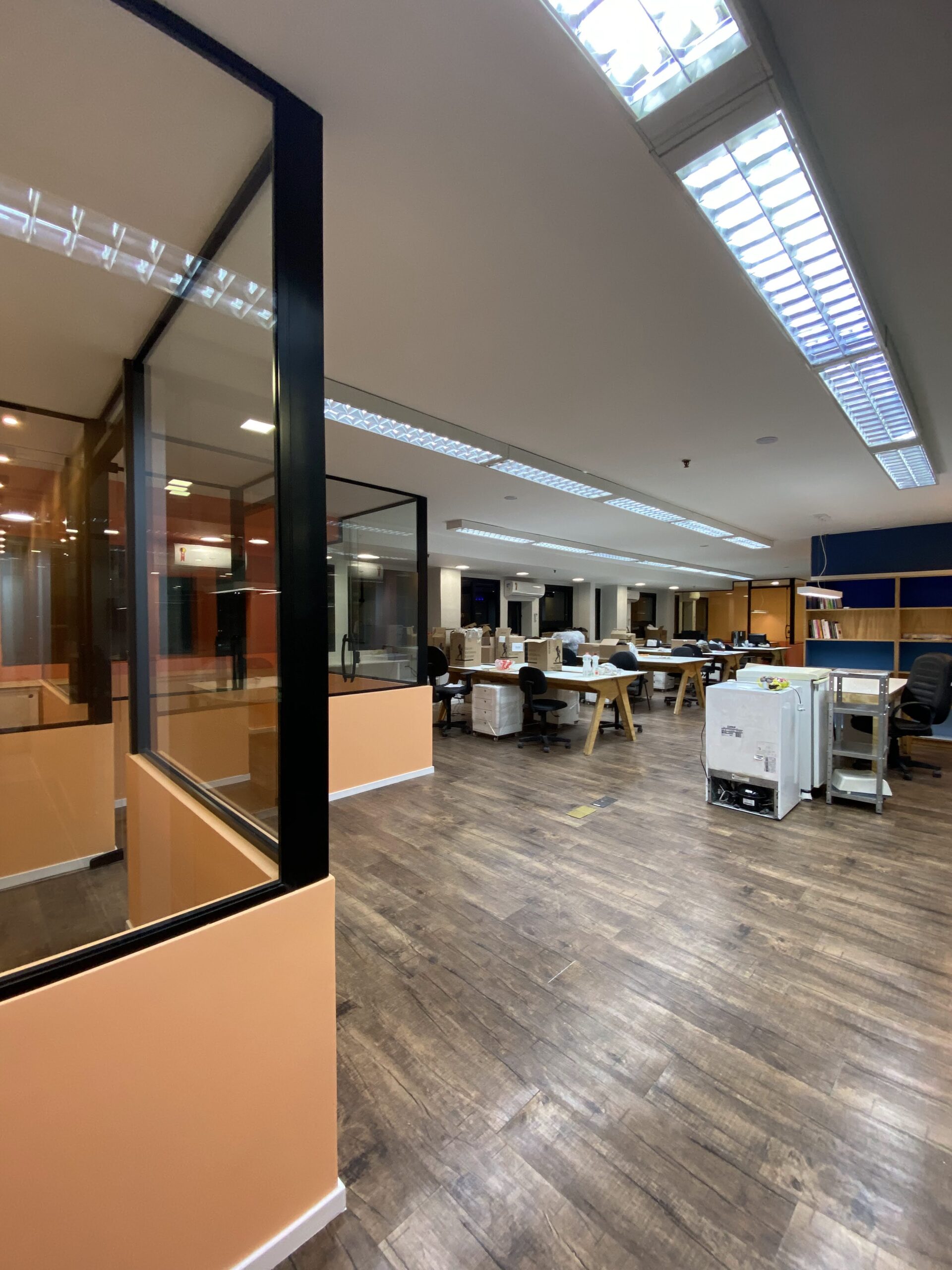 Reforma em conjunto comercial para a editora Record. Demolição de paredes, criação de novas divisórias em drywall e vidro, novos pontos de tomada, rede e iluminação, instalação de piso vinílico, ar condicionado e pintura.